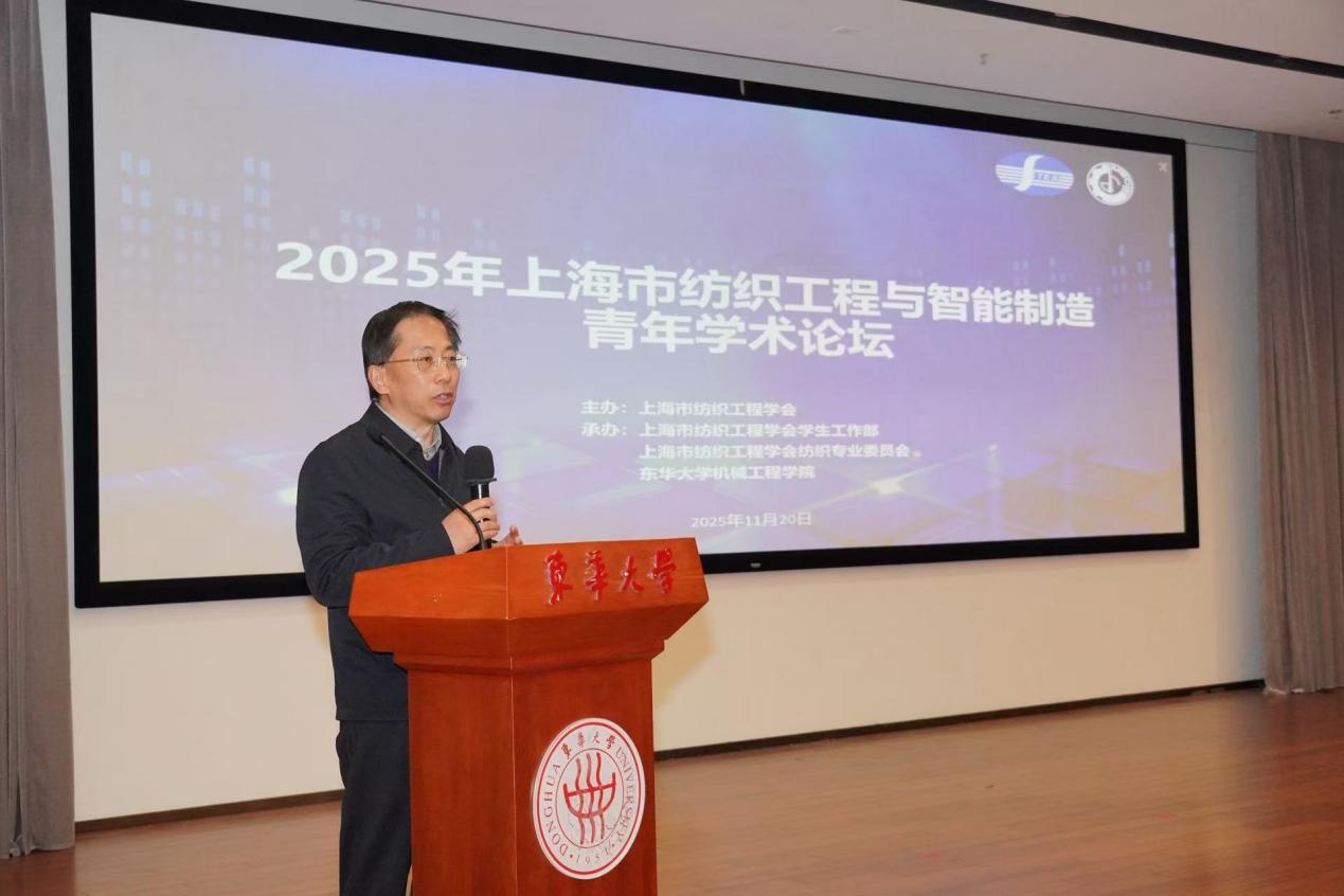 2025年11月20日,由上海市纺织工程学会主办,上海市纺织工程学会学生工作部、上海市纺织工程学会纺织专业委员会、东华大学机械工程学院承办的“2025年上海市第二届纺织工程与智能制造青年学术论坛”在东华大学松江校区复合材料协同创新中心第一报告厅举行。出席本次论坛的嘉宾有:上海市纺织工程学会副理事长兼秘书长马平春,东华大学机械工程学院党委书记、上海市纺织工程学会纺织专业委员会主任、学工部部长王新厚,上海市纺织工程学会纺织专业委员会副主任、东方国际(集团)有限公司教授级高工杜卫平,上海工程技术大学教授林兰天,东华大学机械工程学院副院长裴泽光、白涛等。