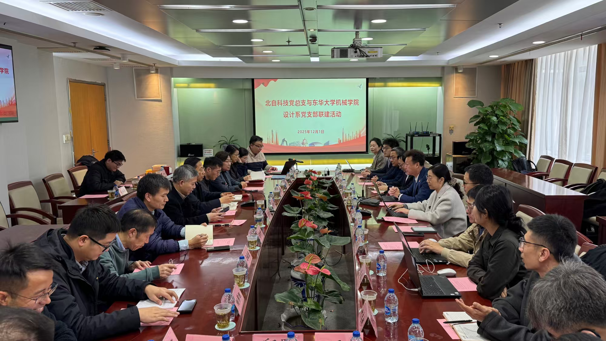 2025年12月1日,东华大学机械工程学院机械设计系党支部与北自科技党总支以“学习党的二十届四中全会精神,争做科技自立自强的践行者”为主题,开展联学共建。北自科技党总支书记、总经理王勇,党总支委员徐慧、张可义等党员代表,机械工程学院党委书记王新厚,副院长周其洪,专职党务干部黄璐,机械设计系党支部教师参加本次活动。