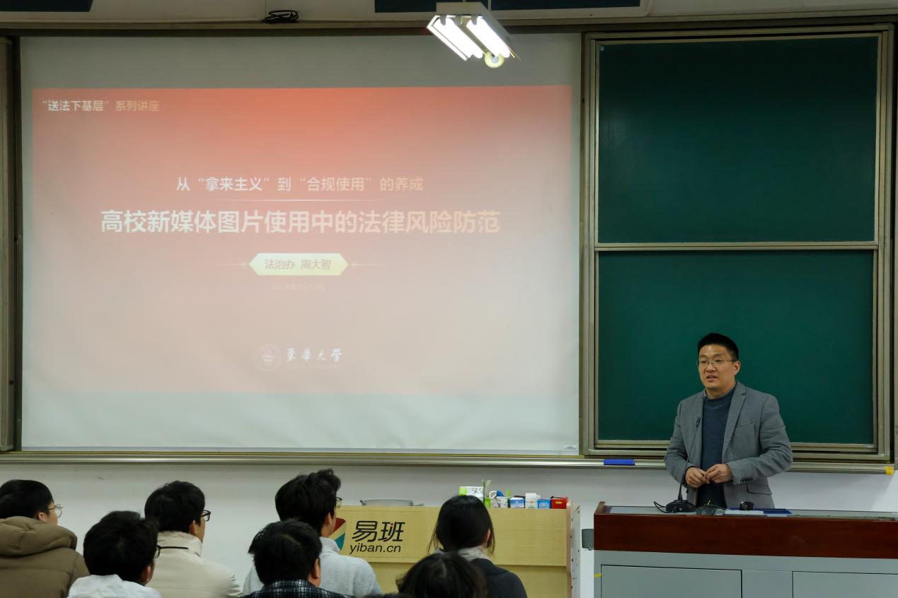 为进一步规范校园宣传工作,提升学生骨干知识产权保护与法律风险防范能力,3 月 10 日下午,机械工程学院于二教2134 室,特邀学校法治办周大智老师开展校园宣传著作权合规与侵权风险防范专题培训课。学院新媒体运营、宣传工作负责人及学生骨干参加学习。